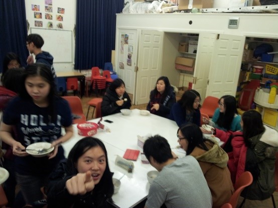 I joined their dinner at half past six. The students take turn and work together in different roles (planning the menu, buying and preparing food, setting up the venue and the table) to serve according to their gifts. I enjoyed the tomato onion with minced beef very much and I noticed that everyone ate their food quietly without any comment, but enjoyed talking to neighbours. The dessert, sweet potato ginger soup kept us warm from the wind and the rain.